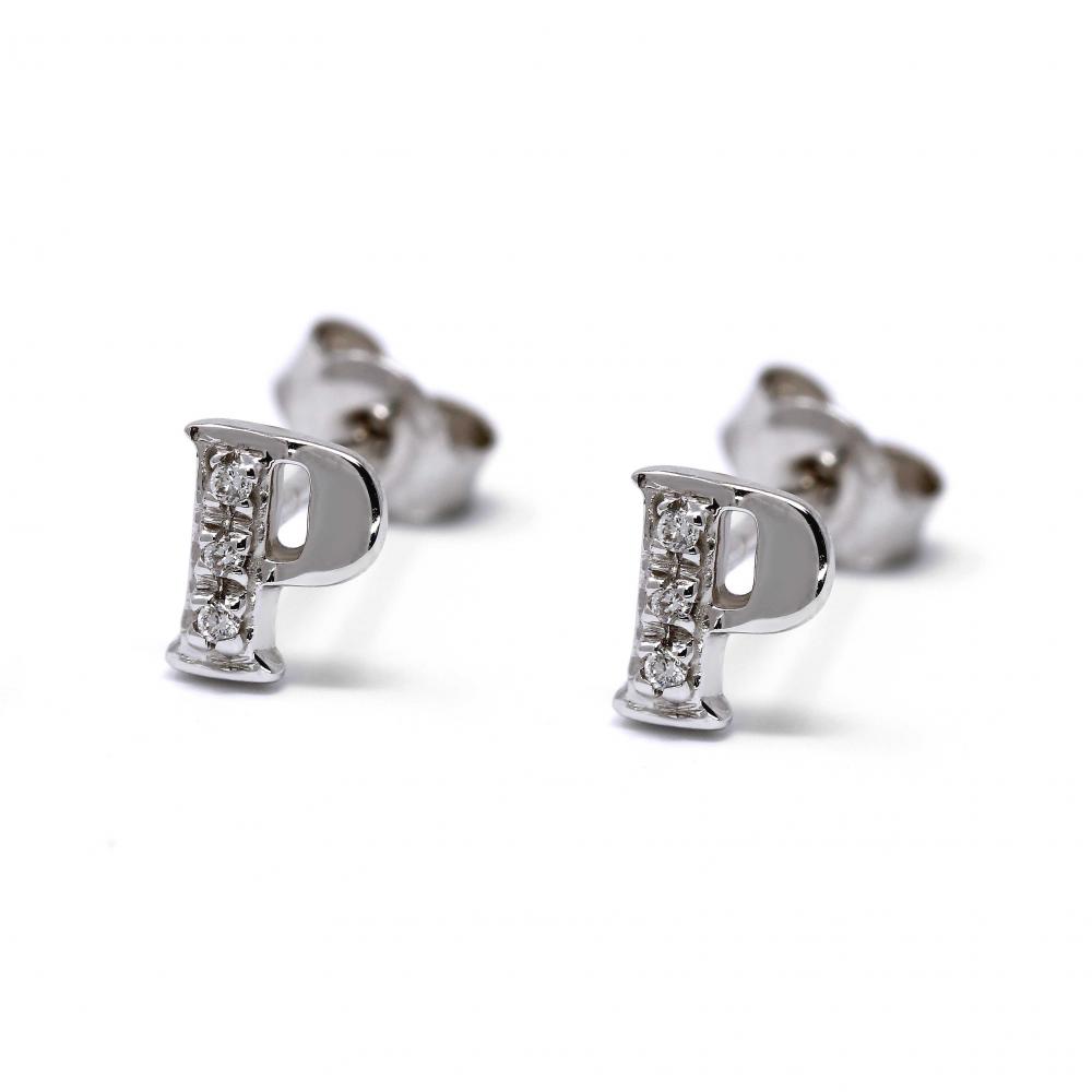 Orecchini a lettera P con Diamanti Bianchi CT 0.03