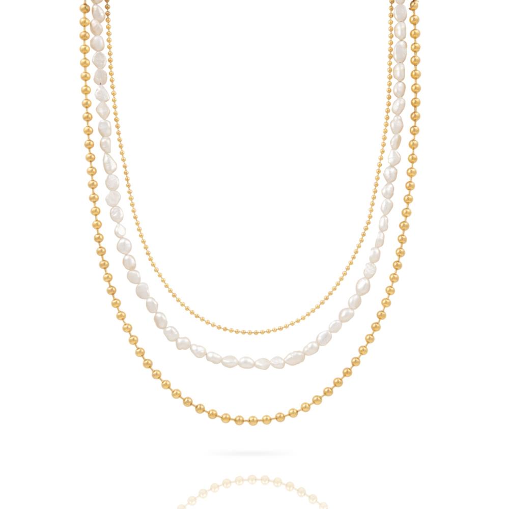 Collana con Perle Naturali e catene a sfere in acciaio lucido con trattamento PVD Oro Giallo