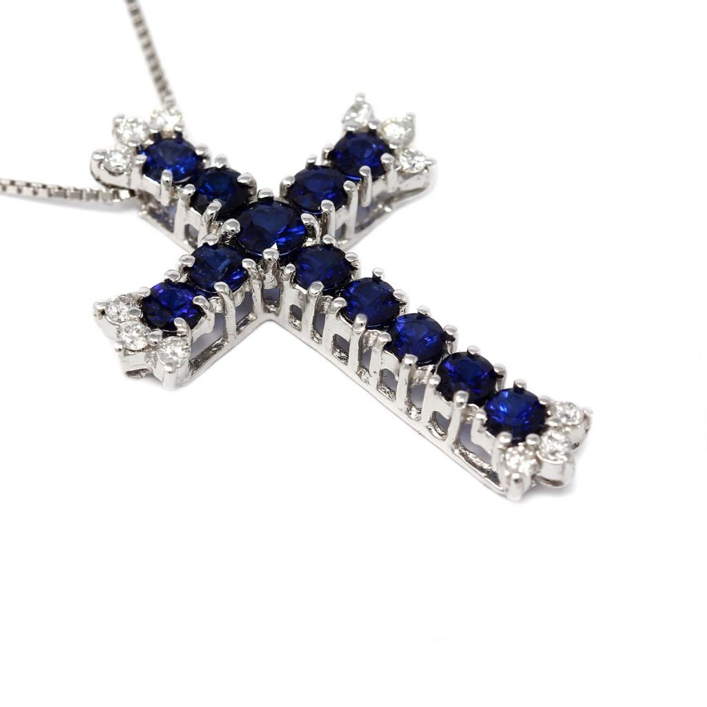 Croce con Zaffiro CT 1.36 e Diamanti CT 0.24