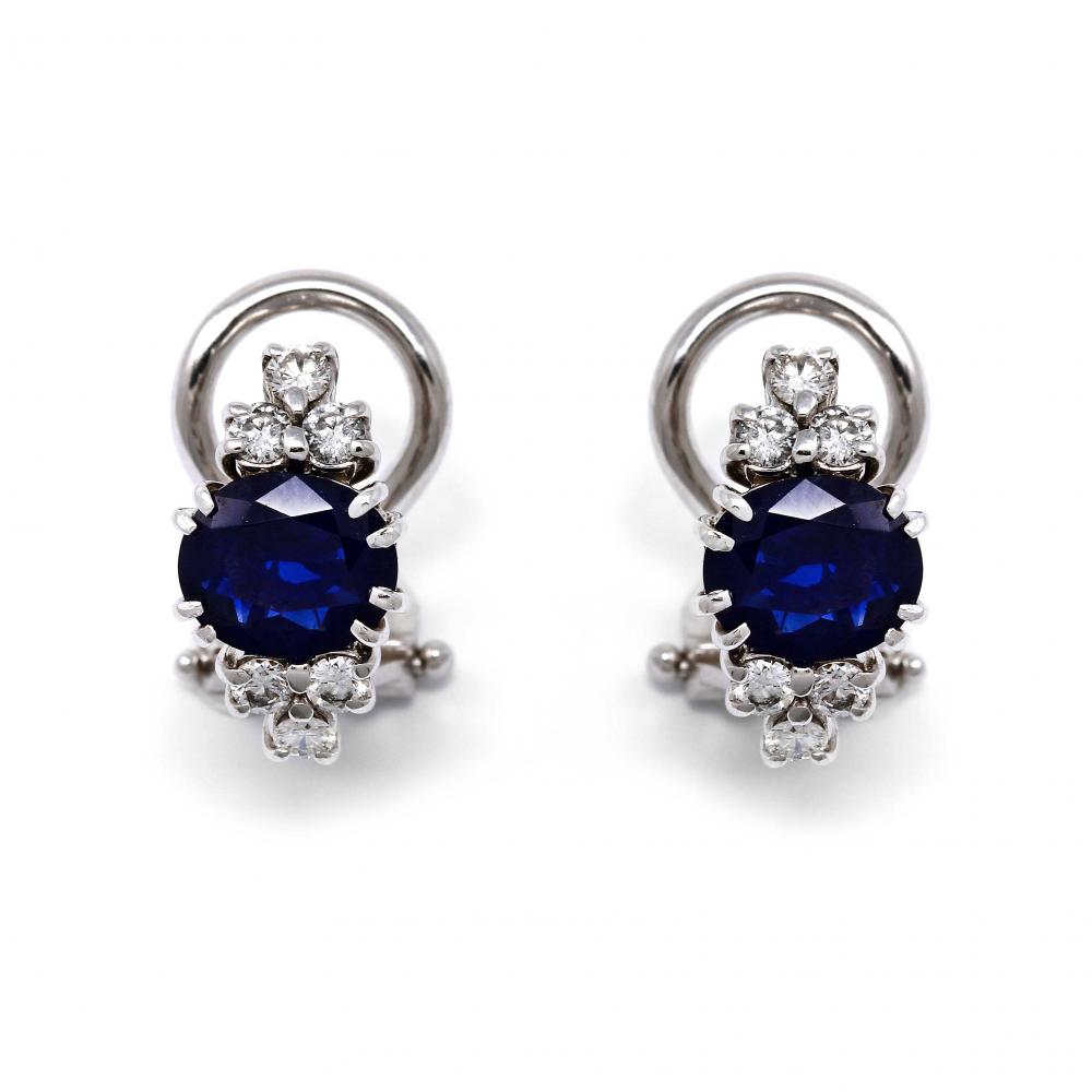 Orecchini con Zaffiri Ovali CT 1.90 e Diamanti CT 0.36