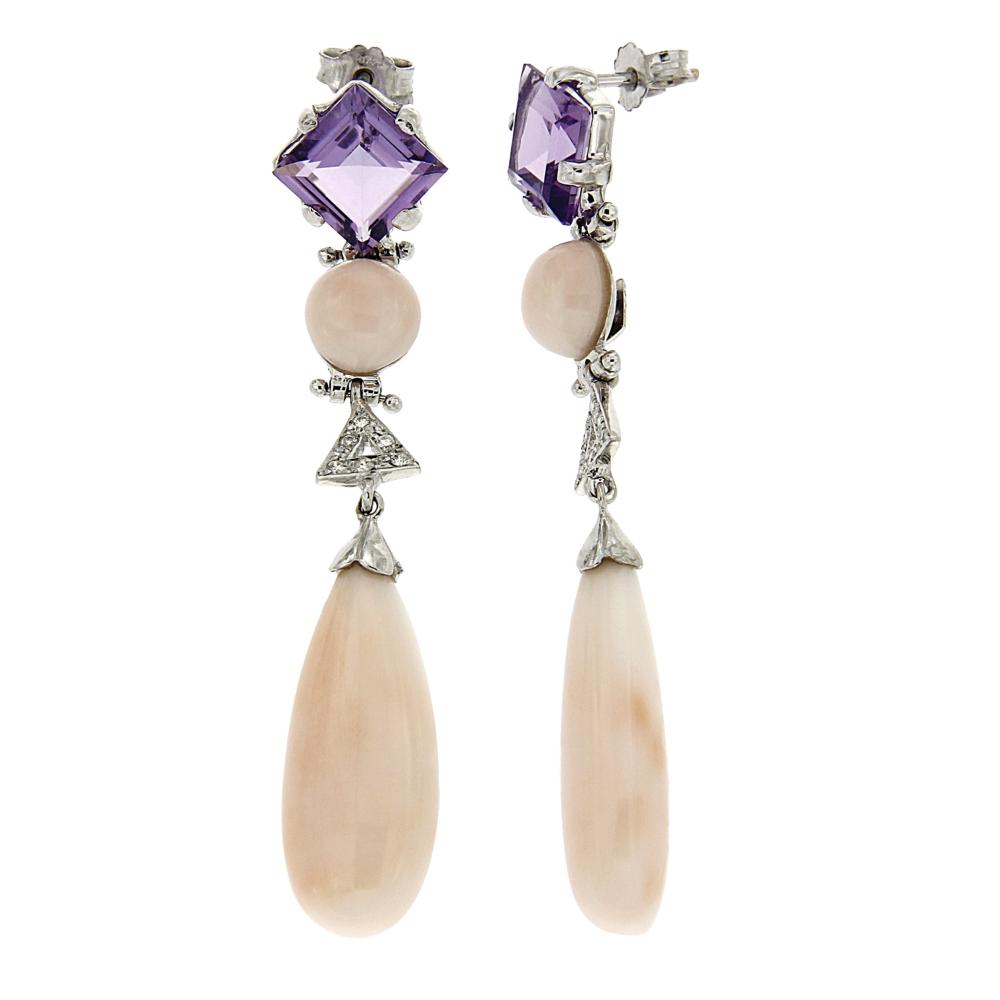Orecchini con Coralli Rosa, Ametista e Diamanti