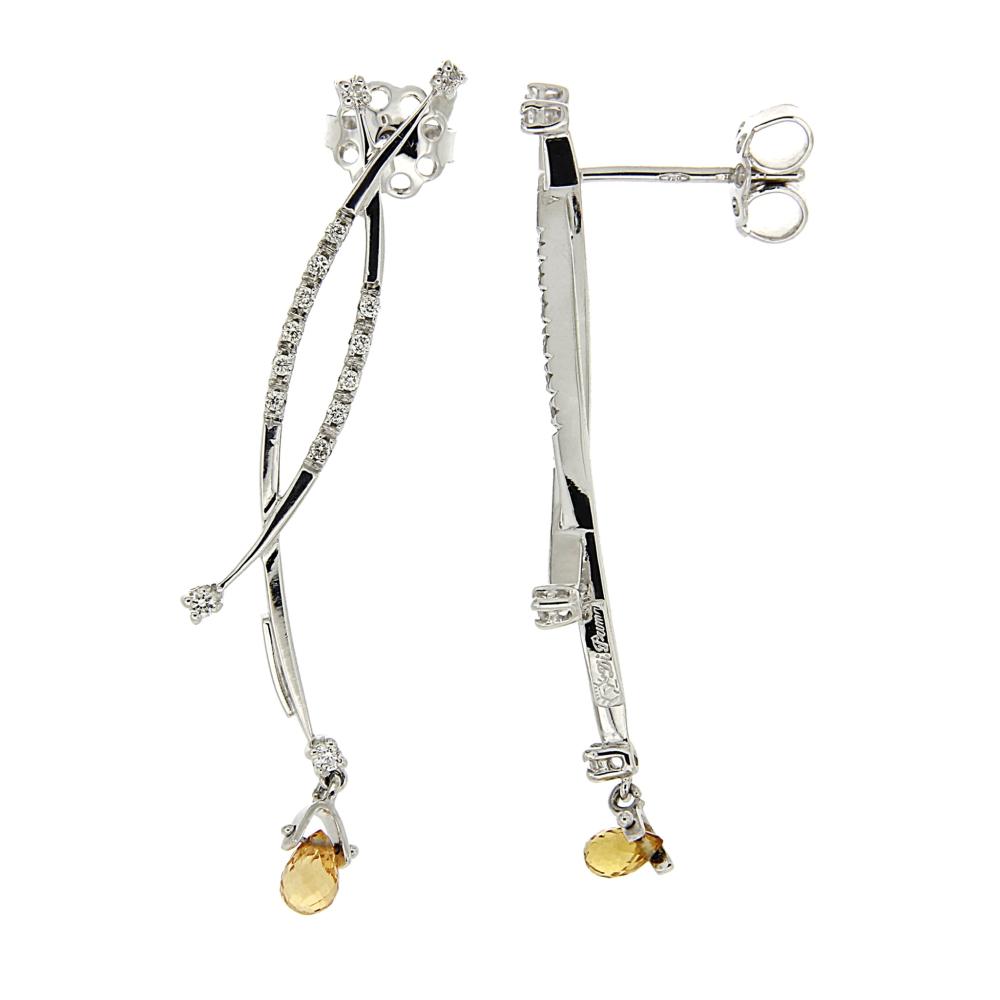 Orecchini con Diamanti CT 0.30 e Quarzo Citrino a Goccia