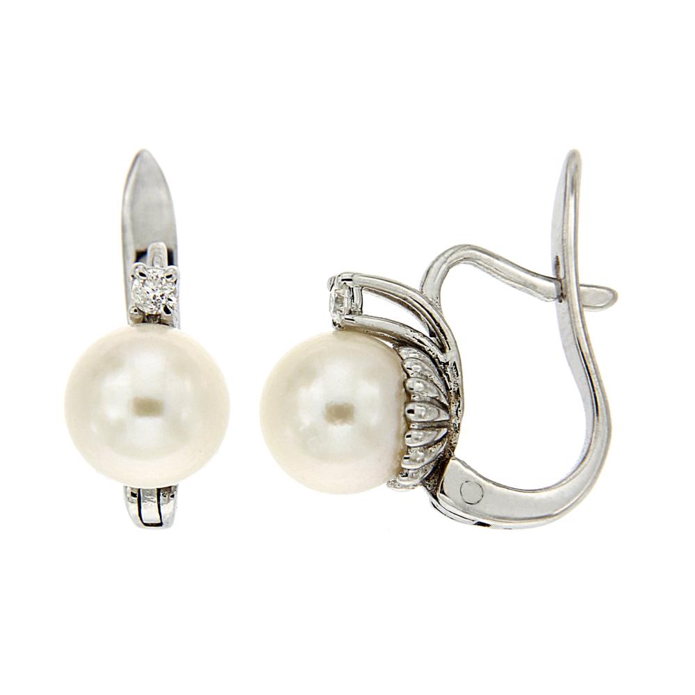 Orecchini con Perle Akoya 7/7,5 mm e 2 Diamanti CT 0.06