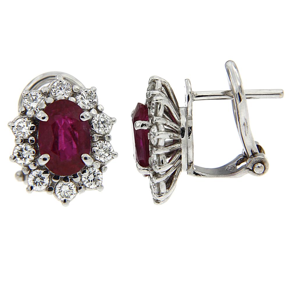 Orecchini con Rubini CT 1.88 e Diamanti CT 0.60 in oro Bianco