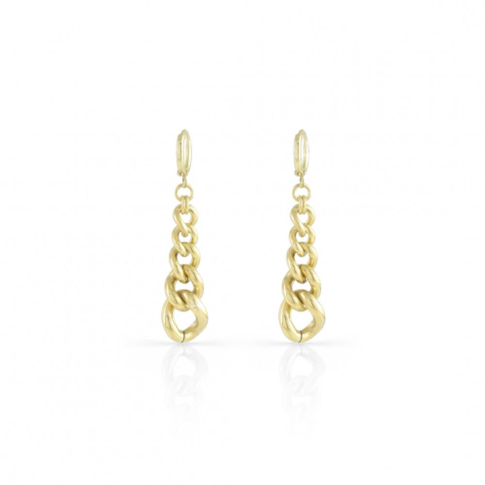 Orecchini lunghi in bronzo con catena grumetta a scalare. Questi splendidi orecchini sono una versione super elegante della classica, intramontabile catena grumetta resa dinamicadalle maglie più grandi a scalare. Indossali insieme alla collana coordinata per una parure très chic.