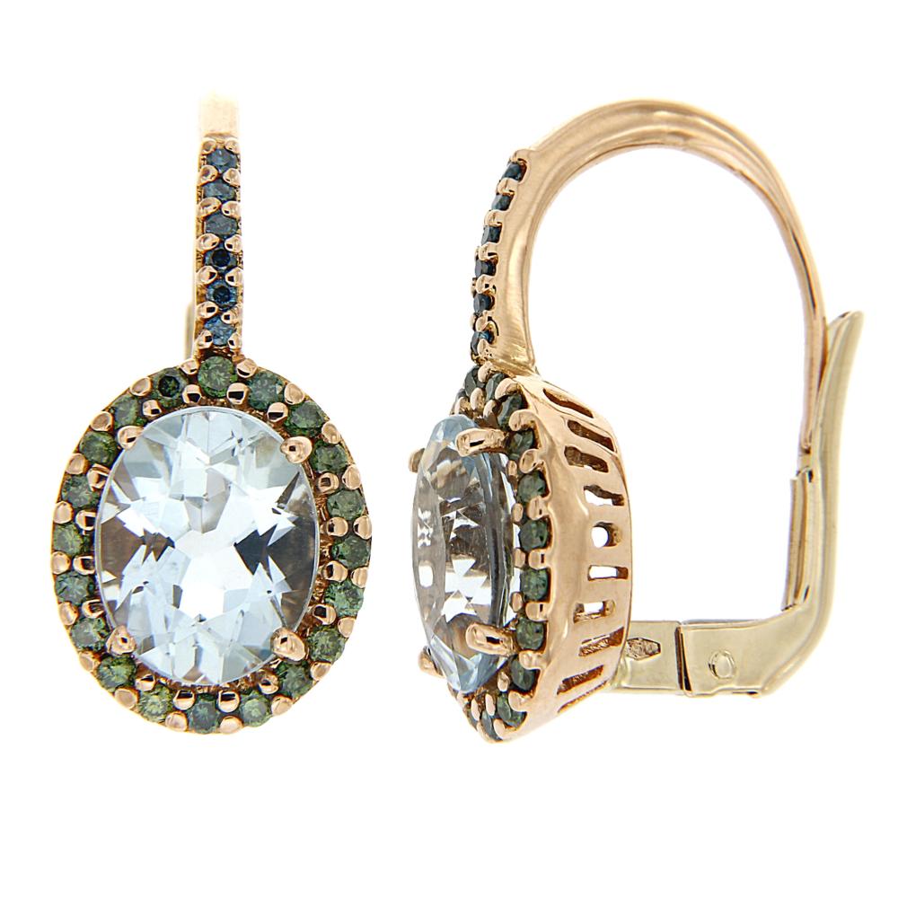 Orecchini in Oro Rosa con Diamanti Blu e Acquamarina Linea Iole