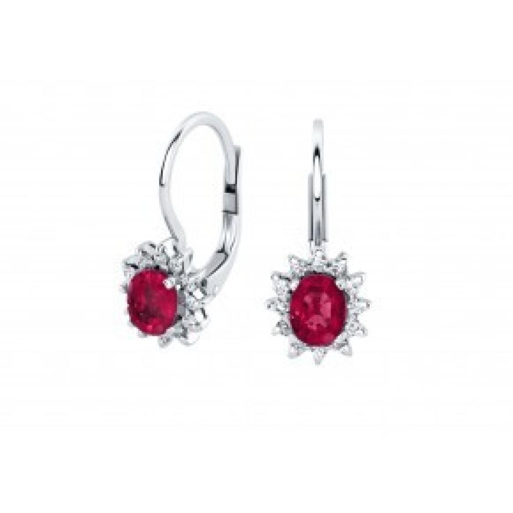Orecchini monachella in argento con cestello di zirconi e pietra rossa