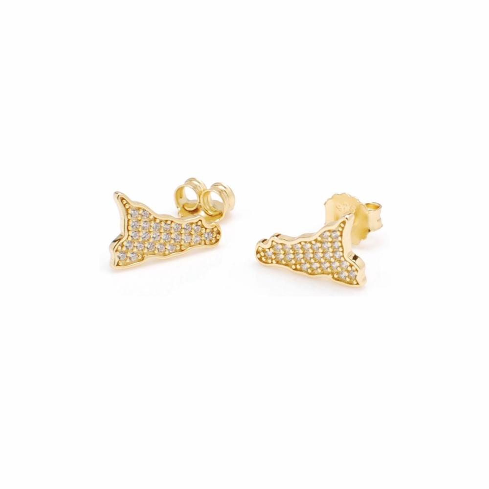 Questi orecchini a lobo in argento 925 placcato oro giallo 24kt rappresentano la sagoma della Sicilia, interamente impreziosita da zirconi bianchi che donano luminosità e raffinatezza. Un gioiello dal forte valore simbolico, elegante e moderno, perfetto per chi ama portare sempre con sé un legame speciale con la propria terra o per chi desidera un accessorio unico e ricco di significato.