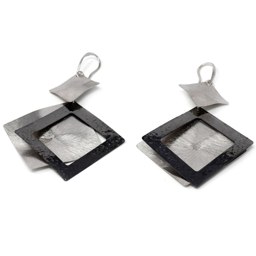 Orecchini Etrusco con finitura martellata tipica della linea Mirage un gioiello impreziosito da una placcatura in Argento Brunito Satinato che rendono questo bijoux estremamente luminoso ed elegante. Come tutti i gioielli QU4TTRO.0 anche questi cubi vengono progettati e lavorati in Italia mediante l'utilizzo delle più moderne tecnologie e rifinito a mano per garantirne il massimo dettaglio e la più elevata qualità. Abbina questi orecchini alle altre creazioni della collezione Etrusca e completa il tuo look. Questo gioiello viene proposto con una finitura Argento Brunito Satinato a Rombo cm 7