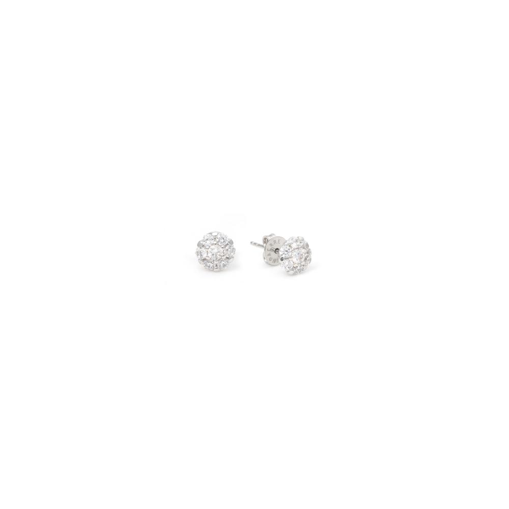 Orecchini in argento rodiato con fiori in pavé di pietre zirconia cubica bianca. Chiusura al lobo con perno e farfalla. Gli accessori, se scelti con cura, posso valorizzare un look permettendo di esprimere la propria unicità. Con questi luminosissimi orecchini trasmetterai eleganza raffinata ed illuminerai ogni outfit. Scopri la scintillante collezione Luxury ed indossa questi orecchini insieme a collana ed anello.