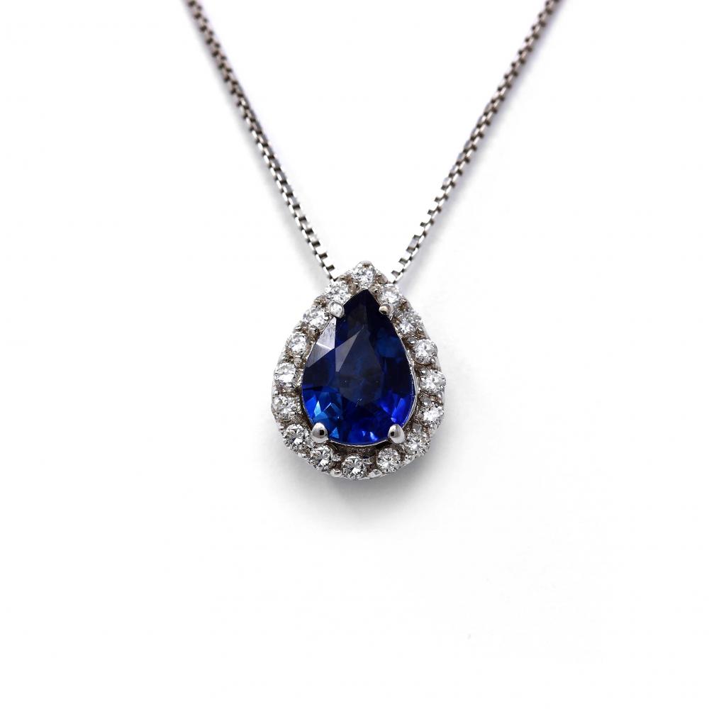Pendente con Zaffiro CT 0.82 a Goccia e Diamanti Bianchi CT