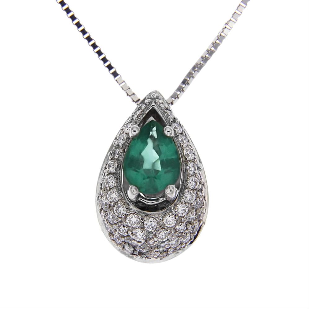 Pendente a Goccia di Smeraldo Colombiano CT 0.98 e Diamanti CT 0.60
