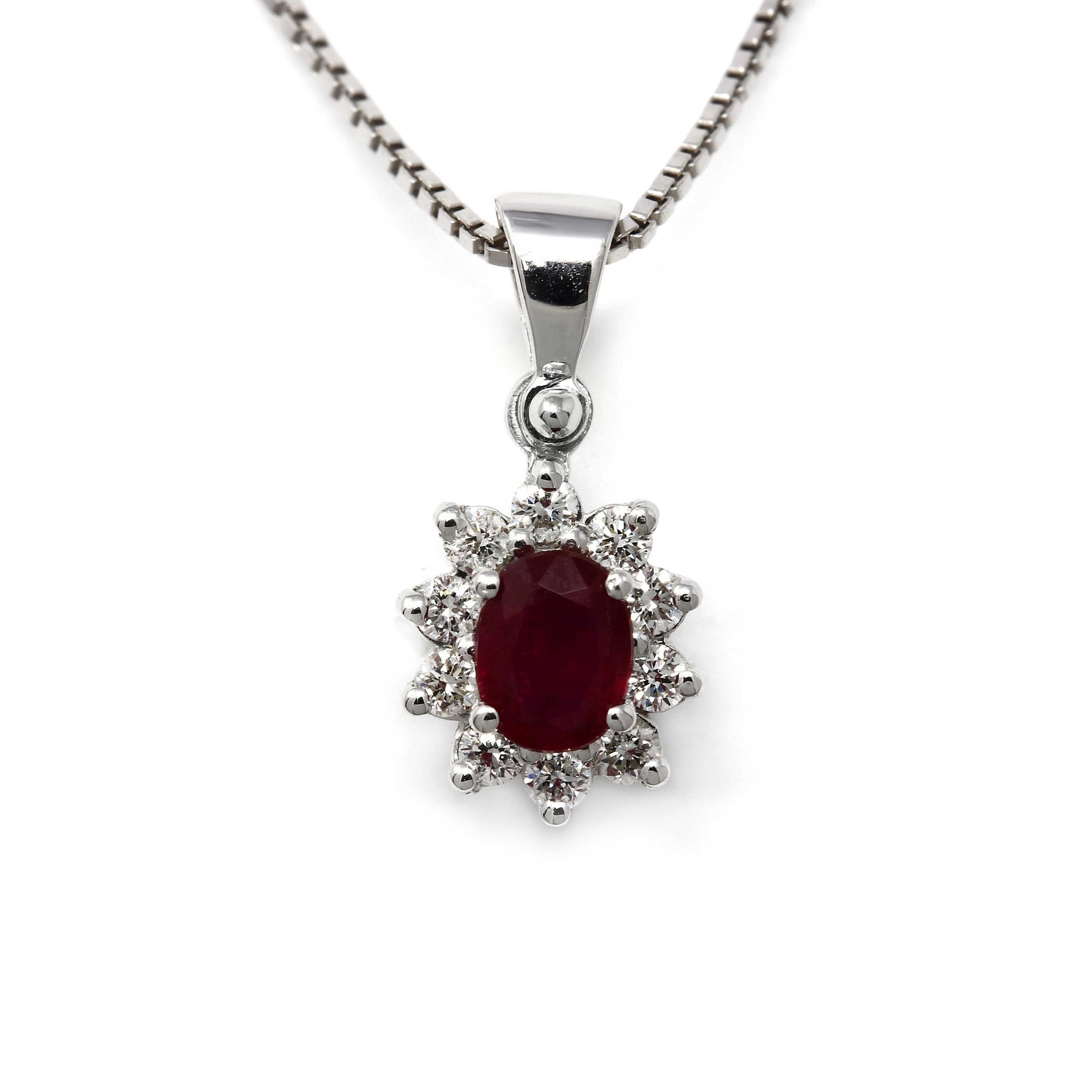 Pendente Cestello con Rubino CT 0.18 e Diamanti CT 0.10