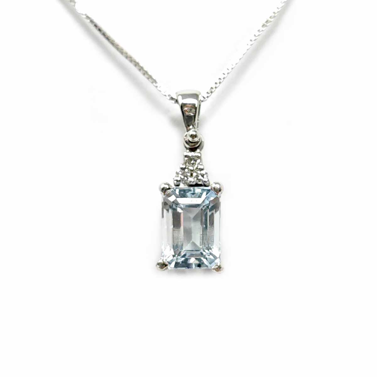 Pendente con Acquamarina CT 1.01 e Diamanti CT 0.04