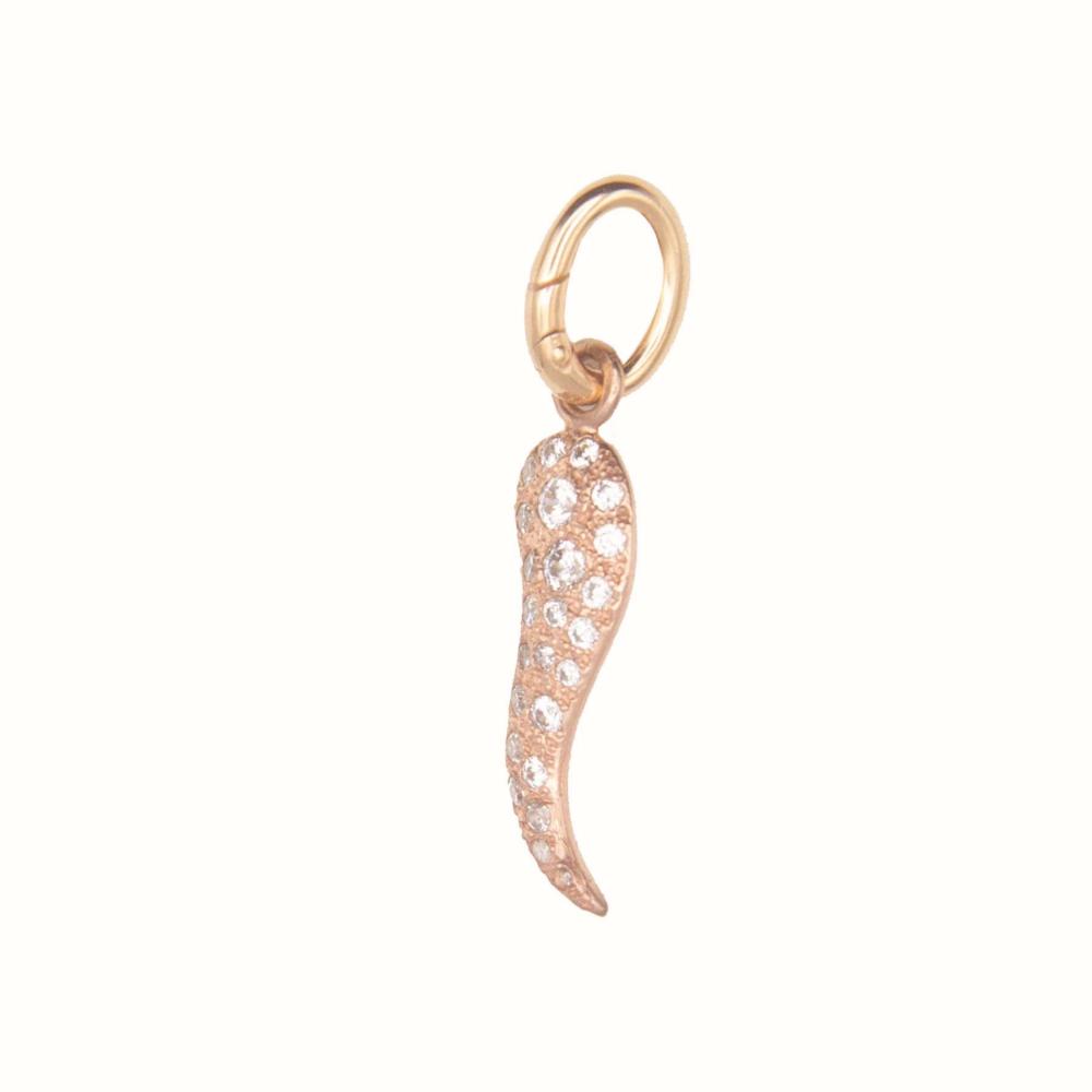 Pendente in argento 925 o argento Rosè a forma di Cornetto arricchito con Pavè.