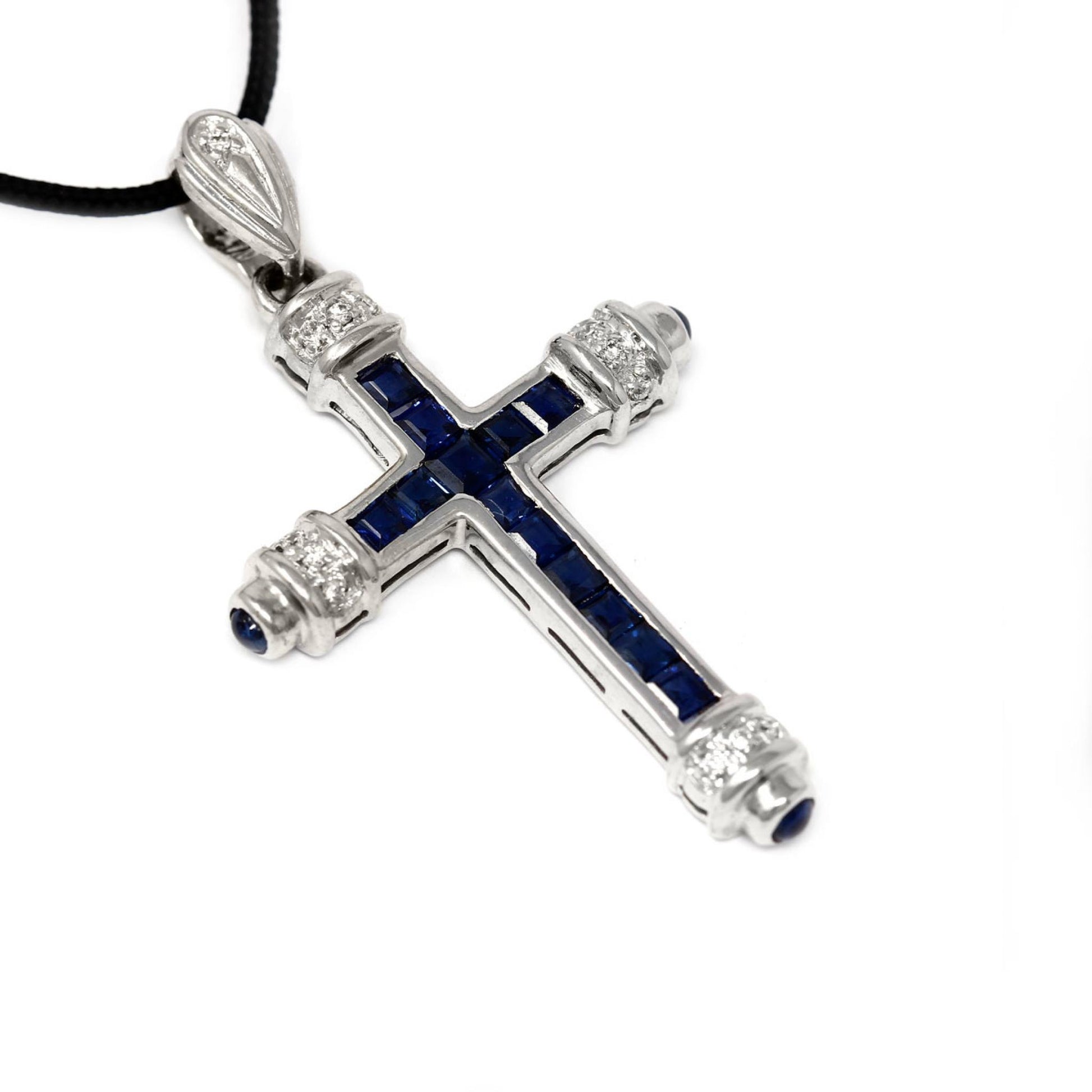 Pendente Croce con Diamanti CT 0.07 e Zaffiri CT 0.98