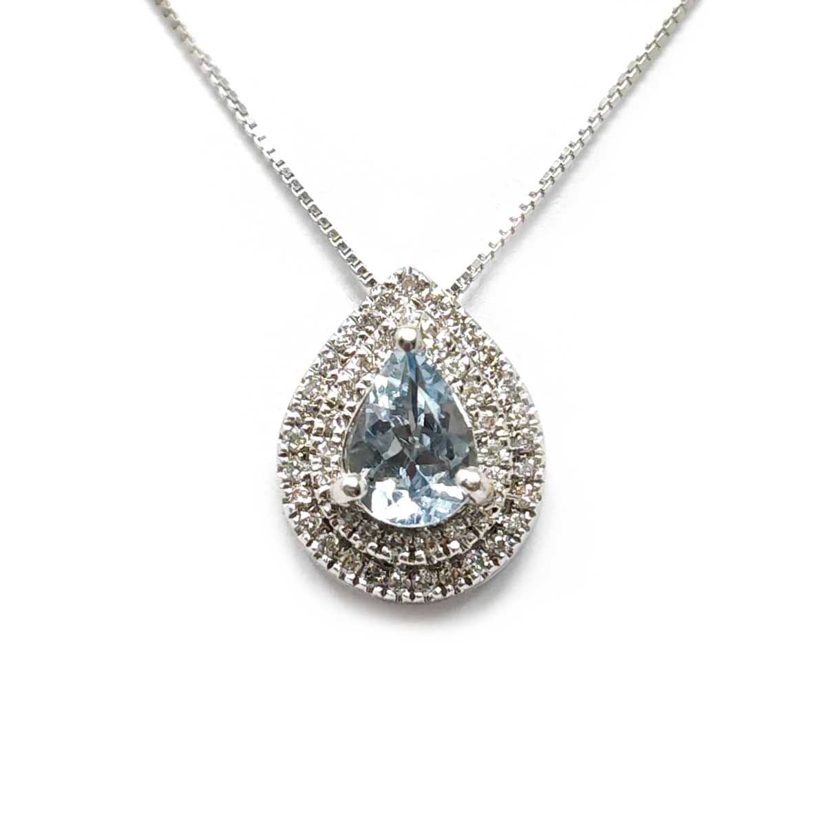 Pendente Goccia di Acquamarina CT 0.45 e Diamanti CT 0.18