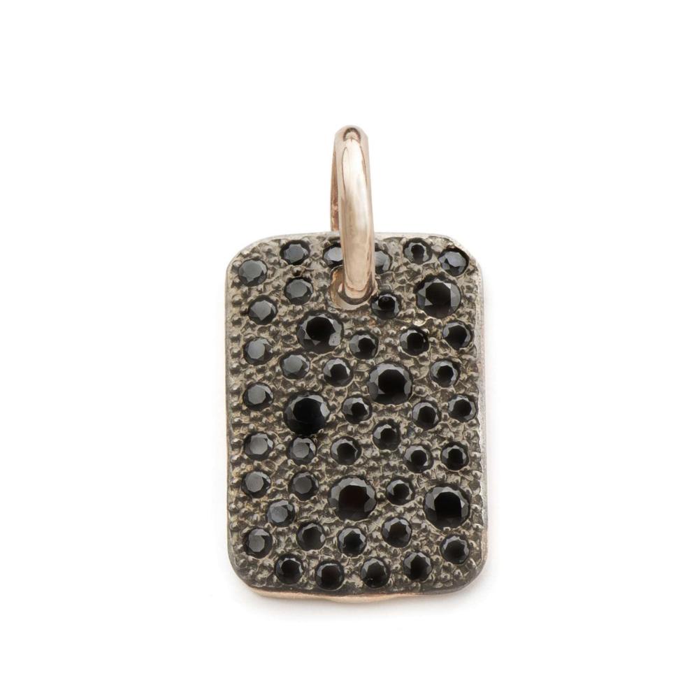 Pendente pavè in argento 925 di forma rettangolare con uno studio particolare di incassatura mista, arricchito da pietre taglio brillante di svariati colori e dimensioni. Fatto in Italia. (Dimensione 15x20mm)