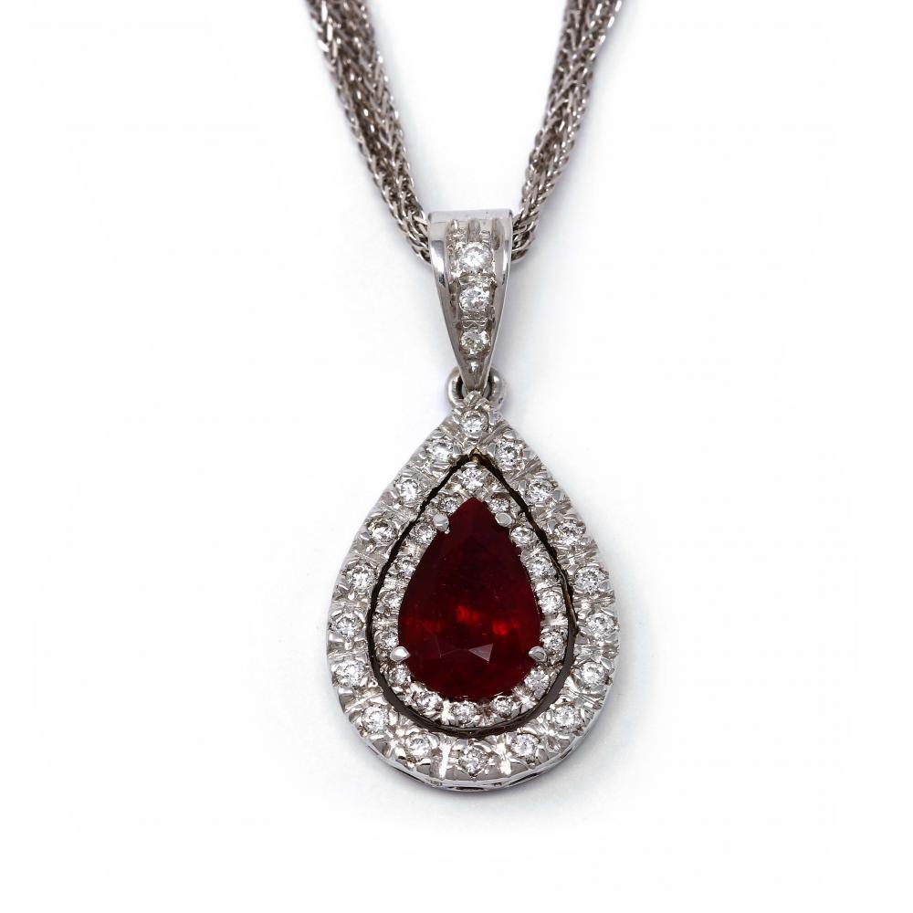 Pendente a Goccia con Rubino CT 2.12 e Diamanti Bianchi CT 0.40
